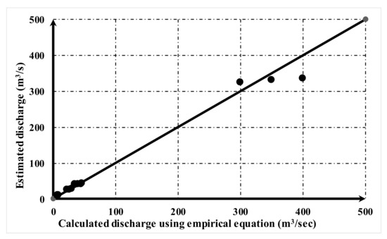 Comparison between calculated discharge using empirical equation and estimated discharge.