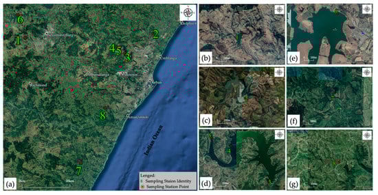 - Olaniran, A.O.; Naicker, K.; Pillay, B. Assessment of physico-chemical qualities and heavy metal concentrations of Umgeni and Umdloti Rivers in Durban, South Africa. Environ. Monit. Assess. 2014, 186, 2629–2639. [Google Scholar] [CrossRef] [PubMed]