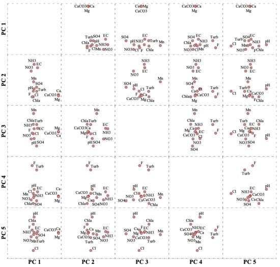 - Tripathi, M.; Singal, S.K. Use of Principal Component Analysis for parameter selection for development of a novel Water Quality Index: A case study of river Ganga India. Ecol. Indic. 2019, 96, 430–436. [Google Scholar] [CrossRef]