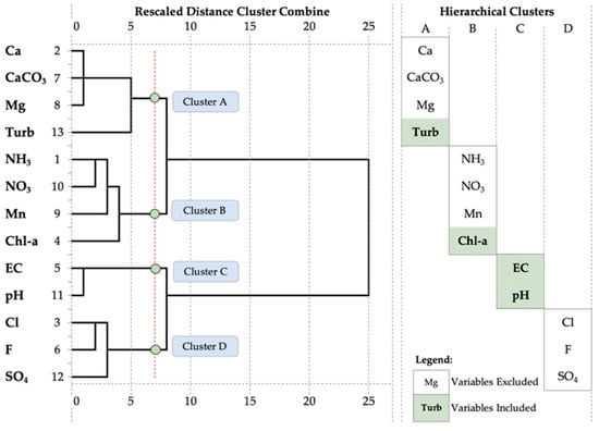 | Variable | NH3 | Ca | Cl | Chl-a | EC | F | CaCO3 | Mg | Mn | NO3 | pH | SO4 | Turb |