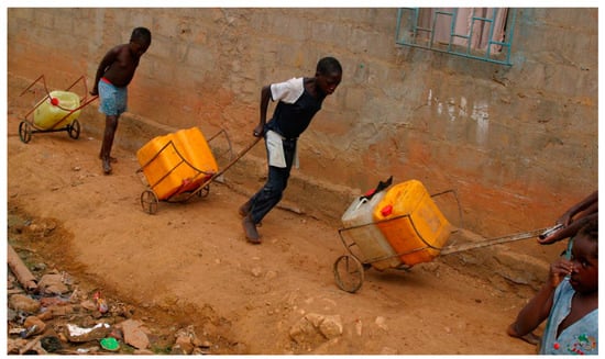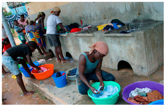 In the mid-1980s, the author’s organization, Development Workshop, was invited by the Angolan Women’s Organization (OMA) to assemble a team to work with them to address the overwhelming concern to their members, who often spent hours searching and transporting water to their homes every day [10]. Improving access to water was a key to empowering women for OMA and helping free girls from the servitude of carting water, giving them more time to go to school. In the 1990s the World Bank commissioned in-depth studies on water markets in Luanda and other cities as part of the feasibility-study phase prior to making major infrastructure investments [11,12], aimed at understanding the informal economy’s contribution to Angola’s post-war development.