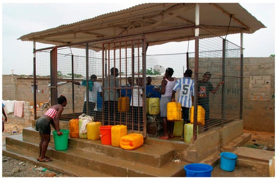 More than 50% of urban population in Sub-Saharan Africa depends on informal, small-scale providers and community initiatives for their drinking water [28]. Mapunda, Chen, and Yu [29], in Tanzania, show that, like in Angola, various types and sizes of informal water suppliers are filling the gap left by public utilities or failed attempts at privatization. They argue that the integration of informal operators into the public regulatory system can greatly contribute to the improvement of water supply services for peri-urban populations.
