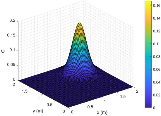 equals to initial concentration values at each time step. The and parameter matrix can be determined by using the relations given in Equations (A1) and (A4), which give equations with unknowns for each row and equations with unknowns for each column. The unknowns are for each row vector and for each column vector. To express them in terms of known parameters first and second derivatives are used at the boundary nodes. These derivatives are approximated by using finite difference (FD) schemes or known from boundary conditions depending on the problem domain.
