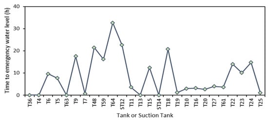 Figure 8 presents the time needed for each tank to reach its emergency water level. From
