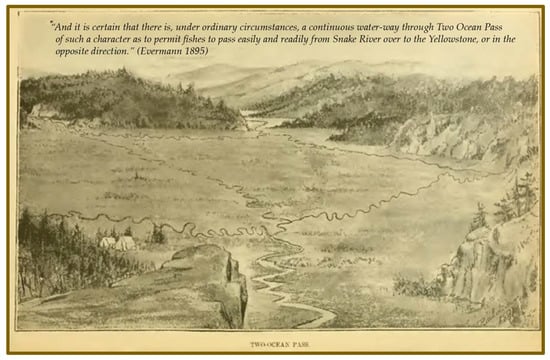 - Evermann, B.W. Two-ocean pass. Popul. Sci. Mon. 1895, 47, 175–186. [Google Scholar]