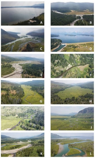 Connected waters of the upper Snake and Yellowstone River systems in Yellowstone National Park, Grand Teton National Park, and the Bridger-Teton Wilderness in northwestern Wyoming, including (A) Lewis Lake; (B) the confluence of the Lewis and Snake rivers; (C) Snake River confluence with Jackson Lake; (D) Jackson Lake and dam; (E) lower Pacific Creek; (F) middle Pacific Creek; (G) upper Pacific Creek; (H) Two Ocean Pass and the confluence of North Two Ocean Creek with Pacific and Atlantic creeks; (I) middle Atlantic Creek; (J) the confluence of Atlantic Creek and the Yellowstone River; (K) Yellowstone River upstream of Yellowstone Lake; and (L) Yellowstone River confluence with Yellowstone Lake.