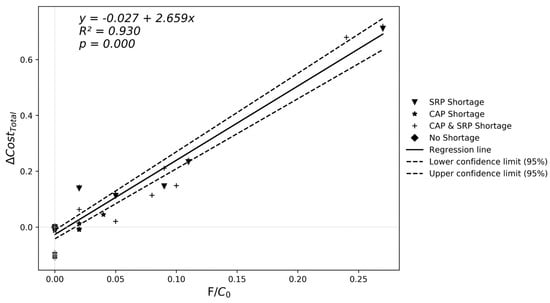 A municipality’s cost to bring potential sources online during drought is proportionate to the volume of water required. Some municipalities would face much larger relative deficits and much larger cost escalations than others, depending on the scenario considered. The escalation of cost is predictable at a significant R2 of 0.94 using the equation Cost1/Cost0 = 2.785 F/C0 (Figure 7).