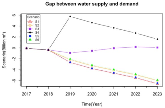 The above analyses looked at how to promote the dynamic and balanced development of water resources from the perspective of regulating and controlling water resources demand. From the simulation results of scenario 6, with the purpose of increasing the supply of water resources, it can be seen that proper development of water resources can alleviate the contradiction between water supply and demand in Jiangsu.