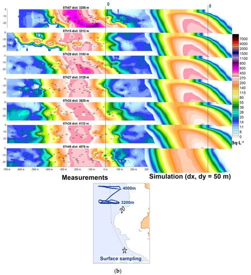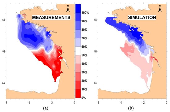 Collaboration between Ifremer-DYNECO-PHYSED oceanographic physicians and IRSN-LRC marine radio ecologists contributes to improve the marine hydrodynamic models used [,,,,,,,]. Further studies have associated systematically in-situ measurements with model simulations in order to improve the efficiency of measurements to check model’s precision and obtain more reliable and versatile models, applicable to all coastal seas of the European continental shelf. Model/measurements comparisons have been performed at the scale of the English Channel and the North Sea with targeted two-dimensional (2D) residual and instantaneous models [,,,]. This was done in the Bay of Biscay [] and the Pacific [] with three-dimensional (3D) models.