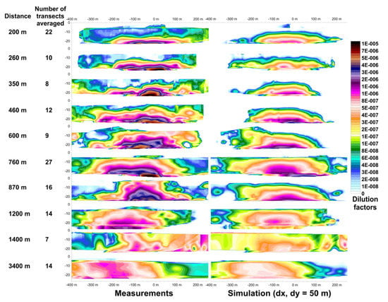 During sampling, the ship was operating at speeds ranging in 0.5–5 m·s−1 with frequent U-turns. Around 13,000 samples could be collected during a four days survey. Vertical slice pictures of the dispersion plume were thus obtained each 5–10 min (100–200 measurements each slice).