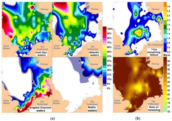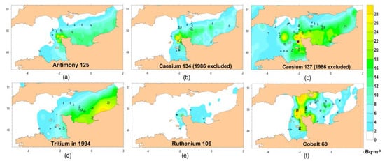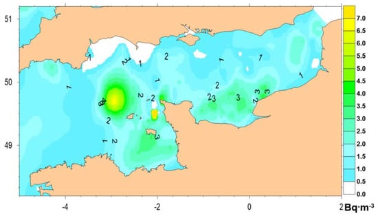 - Guéguéniat, P.; Herrmann, J.; Kershaw, P.; Bailly du Bois, P.; Baron, Y. Artificial radioactivity in the English Channel and the North Sea. In Radionuclides in the Oceans, Inputs and Inventories, RADOC 96–97; Guéguéniat, P., Germain, P., Métivier, H., Eds.; Les Editions de Physique: Les Ulis, France, 1997; pp. 121–154. [Google Scholar]