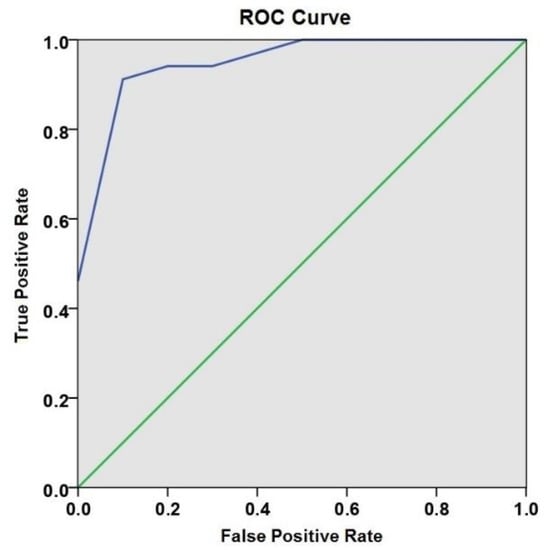 The ROC curve in Figure 17 was drawn using the SPSS program, considering the flood hazards value from the samples collected from the field study and the values extracted from the flood hazard map. The AUC value (using the SPSS program results) was 0.971 (AUC = 0.971) with a 95% confidence level. This AUC value indicates that the reliability of the flood hazard map produced in this study is excellent (around 97.1%).