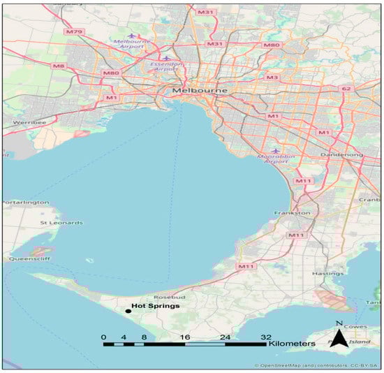 Peninsula Hot Springs (PHS) in Victoria, Australia (Figure 1) is Australia’s largest geothermal bathing facility located at 38°24′32″ S, 144°50′12″ E. The Hot spring obtains its groundwater from various lithological formations. The aquifer is lies in a band of older volcanics between the Selwyn Fault and Postulated Fault. A coal seam is immediately above the older volcanics [].