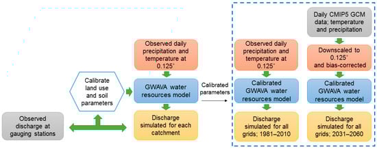 - Müller Schmied, H.; Eisner, S.; Franz, D.; Wattenbach, M.; Portmann, F.T.; Flörke, M.; Döll, P. Sensitivity of simulated global-scale freshwater fluxes and storages to input data, hydrological model structure, human water use and calibration. Hydrol. Earth Syst. Sci. 2014, 18, 3511–3538. [Google Scholar] [CrossRef]