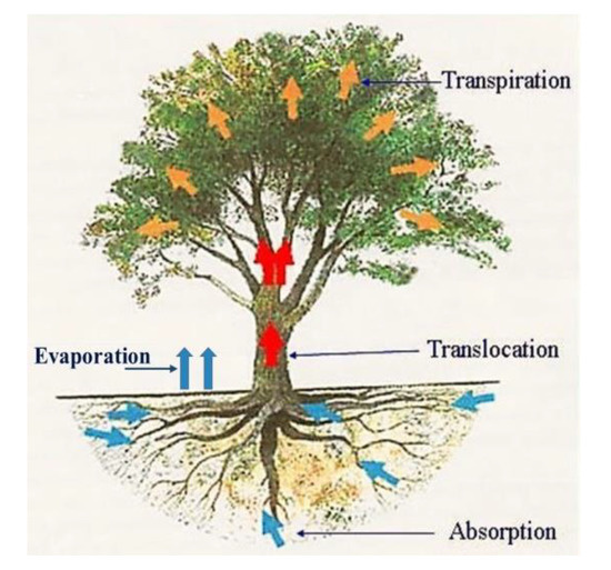 - Heuperman, A.F. Trees in irrigation areas; the bio-pumping concept. Trees Nat. Resour. 1992, 34, 20–25. [Google Scholar]