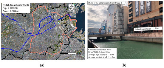 Overview of the tidal area: (a) aerial photo; and (b) photo of Katabira River.
