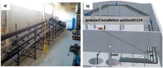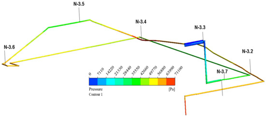 - Then the stage of calibration of the 3D model of the whole installation was followed by adjusting the roughness coefficient values of the pipe so that the pressure values calculated by the model coincided with the pressure values recorded in the measurement points located on the installation (Figure 3).