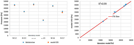Comparison of pressure values obtained from the CFD model with the results obtained from the measurements.