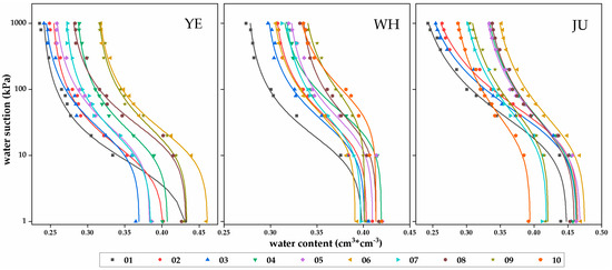 - Chang, C.; Cheng, D.; Qiao, X. Improving estimation of pore size distribution to predict the soil water retention curve from its particle size distribution. Geoderma 2019, 340, 206–212. [Google Scholar] [CrossRef]