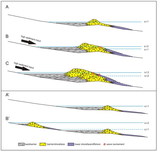The preservation potential of drowned barriers (only possible in the case of overstepping) and related transgressive deposits is considered to be relatively low in comparison to the deposits associated with regressive coasts [13,21].