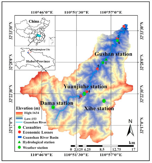 Location of Guanshan River Basin and hazard distribution of the catastrophic flash flood disaster on 5 August 2012.