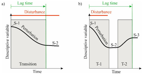 Resilience is fundamentally directed to the way a system responds to a disturbance [39,40] that can be punctual or a long-term process, for example one implying gradual alterations (slow onset changes) [41]. This concept originated in metallurgy and has subsequently been applied in many other disciplines. In the field of ecology, the concept is based on the theory that systems are in a natural state of flux rather than an equilibrium [42]. In this work, we define resilience as a system’s ability to recover a situation of equilibrium or metastability (known as state, see the definition below), characterized by a known behavior. We do not see it as a return to its pristine conditions for two reasons: (a) in many areas, there is no information available to define the pristine conditions, i.e., it refers to a period prior to registration for which there is no data; (b) in general terms, the systems are altered (by humans or by other natural processes) in one way or another, so that their return to an pristine state may be a goal that is significantly outside the realms of possibility.