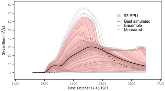 The best-simulated streamflow with 95 PPU and observations during the calibration event in 17–18 October 1981.