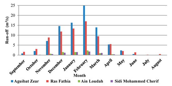 Examination of the historical measurement data from the four observation stations shows that 80% of the inflows to the dam are recorded between October and May (Figure 3). The Bouregreg and Grou rivers contribute more than 90% of the inflows generated in the basin.