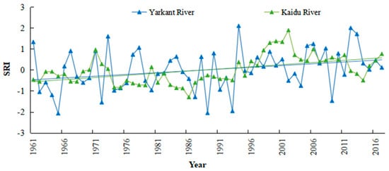 Annual SRI (SRI-12) in the Yarkant and Kaidu River Basins.