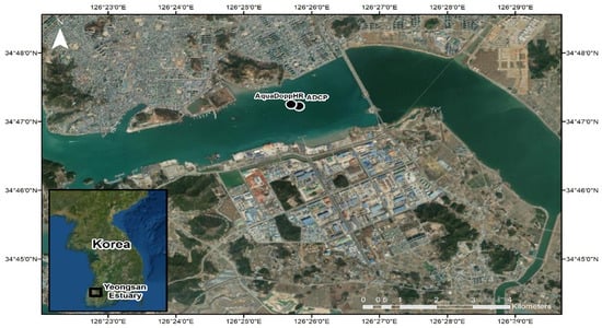 According to several studies, the physical environmental conditions have changed after the dam construction. Kang [] showed that the tidal range increased to 60 and 43 cm for extreme high and low tide, respectively, while the tidal velocity decreased with an ebb tidal dominance causing a change in the sediment transport mechanisms. During the summer season when the gate opens frequently, the freshwater discharge has become an important factor to change the current, temperature, and salinity distribution because of sudden and forced discharge through the surface layer [,,,,]. In terms of flow system change, for example, Cho et al. [] suggested that there exist four layers under low discharge conditions during the summer season, showing seaward flow in the surface and middle layer, and landward flow in the bottom layer and between the surface and middle layers. With freshwater discharge due to the gate opening, a two-layer circulation is formed with strong stratification between the offshore-flowing surface layer and the landward-flowing bottom layer. So, the freshwater discharge can affect directly the estuarine circulation system. In addition, through 210Pb and 7Be radioisotope geochronology in the Yeongsan estuary, Williams et al. [] showed that high sedimentation rates up to 9 cm/year occur in the estuary, and the sediment deposition primarily occurs during episodic events corresponding to high discharge. However, the flow structure and the associated sediment suspension near the bed during freshwater discharge are still not well understood.