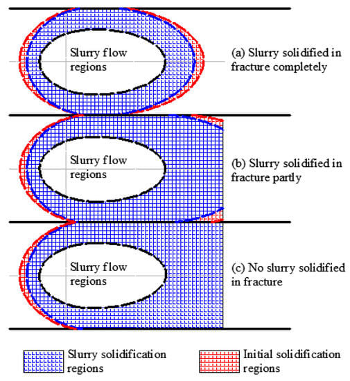In accordance with whether the initial solidified sealing body remains in the fracture, the final diffusion form of the grout can be divided into three types, as shown in Figure 12.