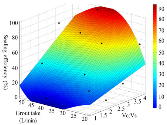 Combined influence of the grout take and the mixture ratio of grout on sealing efficiency.