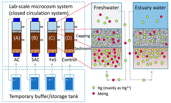 - Ting, Y.; Ch’ng, B.L.; Chen, C.; Ou, M.Y.; Cheng, Y.H.; Hsu, C.J.; Hsi, H.C. A simulation study of mercury immobilization in estuary sediment microcosm by activated carbon/clay-based thin-layer capping under artificial flow and turbation. Sci. Total Environ. 2020, 708, 135068. [Google Scholar] [CrossRef] [PubMed]