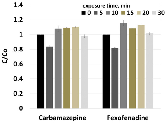 It was shown that the sorption capacity correlates with the molecular weight of studied compounds [10]. In the present study, the highest sorption capacity was mainly shown for compounds a with high molecular mass, such as cetirizine (388.9) and fexofenadine (501.7) (Table 1). DEET and carbamazepine have low molecular mases (191.1 and 236, respectively) among the studied compounds, and showed low sorption capacities.