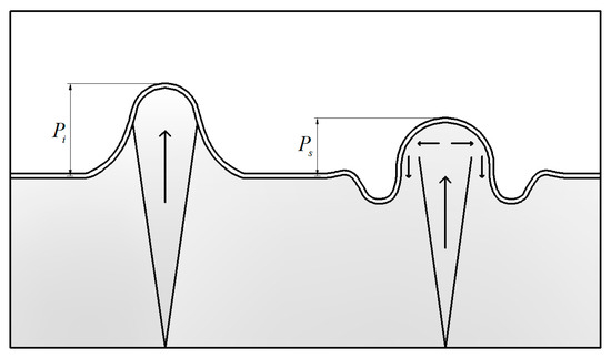 Schematic of the initial penetration height (left) and the stable penetration height (right).