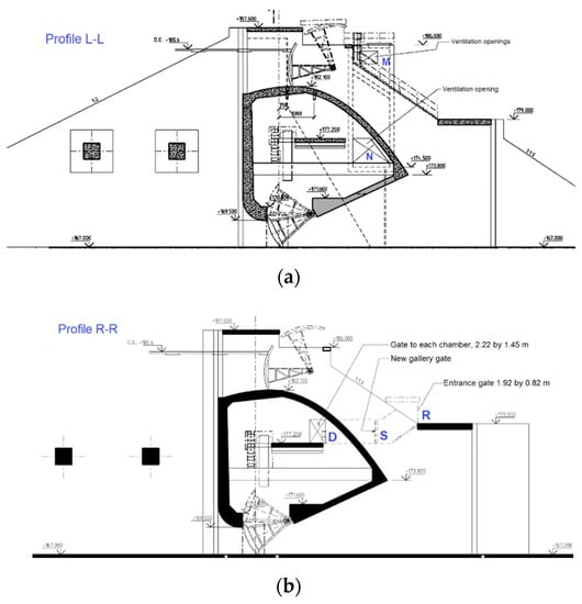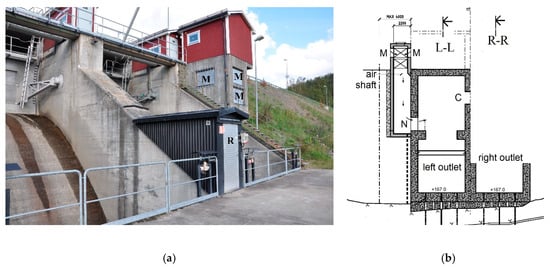 A long tunnel is often used as a flood discharge structure in large dams. The high-velocity flow requires often air supply of significant capacity through air shafts []. In Sweden, a large number of bottom outlets run through dam bodies. The space above the outflows is connected to air-supply or inspection galleries. The operation experiences of 38 such outlets were surveyed by Dath and Mathiesen []. It is found that many safety or security issues are attributable to air supply.