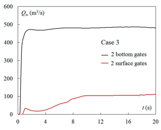 CFD results of Qw in Case 3: simultaneous discharges from two surface and bottom gates.