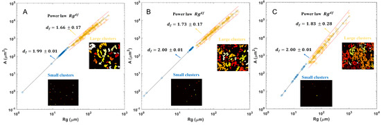 The fractal dimensions of aggregates were determined by relating the cluster sizes to the radius of gyration of the clusters [17,20]: