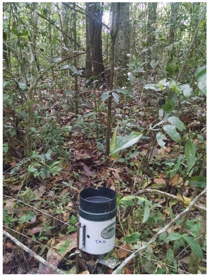 According to Véliz-Chávez et al. [1], net precipitation in forested areas can be described as the sum of three processes. The first, known as free throughfall, is more evident at the beginning of the rainfall event when most of the raindrops that reach the ground surface pass through the canopy openings. The second, known as Dripping, occurs when the rain hits the leaves and branches before dripping down to the ground surface. Dripping is observed during and after the rainfall event. The third, and last, process involves part of the rainfall flowing along the branches to the trunk until it reaches the ground. This portion of the net precipitation is known as stemflow [1]. Some authors, e.g., Helvey and Patric [2], usually designate throughfall as the combination of free throughfall and dripping. Interception, in turn, is the difference between gross precipitation and net precipitation. The amount stored in the canopy evaporates during and after the end of the rain event. Murakami [3] observed that about 10% to 40% of the rainfall evaporates during rainfall events under high humidity conditions. According to Murakami, this evaporation amount is possible because a number of small droplets are produced by splashes when raindrops hit the canopy. Small droplets evaporate even under a relative humidity of 95% and this mechanism is known as splash droplet evaporation. Without the canopy interception, the high energy of the droplets can promote disintegration of soil aggregates due to splash at the soil level. Higher soil particle loss due to the splash effect occurs with different rainfall intensities, causing erosion problems or soil compaction change [4,5].