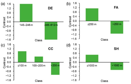 | Contrast | The contrast is a measure of the usefulness of each evidence class in predicting the location of the occurrences [17,18]. | For each class of each evidential theme, the contrast is calculated as the difference between the positive and the negative weight (C = W+ − W−). A positive contrast value means a direct correlation between the class and the TPs, and a negative value means an indirect correlation, whereas a value close to zero means low or no correlation [18] |