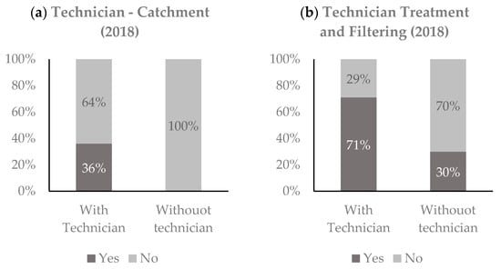 Relation Technician and Catchment (a) and Treatment and Filtering (b) in 2018.