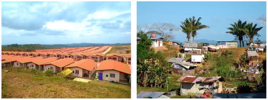 Arraiján grew rapidly in recent decades, from 60,000 inhabitants in 1990 to an estimated 263,000 in 2014 [24,25]. This growth varied in terms of formality and the degree of planning involved (Figure 1). The rapid pace of residential expansion made it difficult for IDAAN to expand the distribution system accordingly. Frequent changes in the Arraiján system’s management structure (between being managed by IDAAN’s central office and a regional office) and difficulties with the implementation of infrastructure improvements also affected IDAAN’s ability to respond to the challenges of rapid growth.