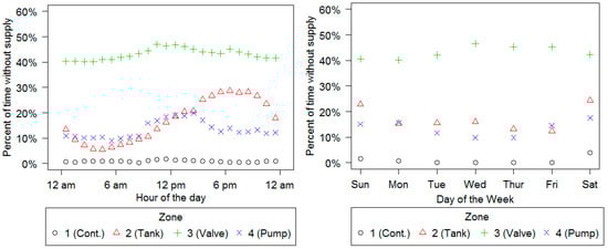 Percent of time each study zone was without supply by the hour of the day and day of the week.