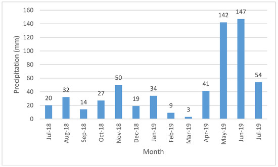The weather in the study period varied a lot. The fall and winter were extremely dry, with some precipitation in November to January and no precipitation in February and March. There was a change from April to June, with extremely high precipitation (Figure 2) and a warming temperature that increased the evapotranspiration.