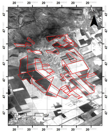 The study area comprised 1700 hectares (ha) of agricultural land. It is located on the southern tip of the mountain range of the North-Western Carpathians and the southern dissected foot slopes of the Bükk Mountains (Figure 1), near the village of Tard (47°52′33.67″ N, 20°35′56.53″ E). Geomorphologically, the area consists of two south-facing plateaus, which are split by the Tardi stream. The average elevation ranges between 150 and 200 m above mean sea level and a moderately warm-dry climate characterizes the region.