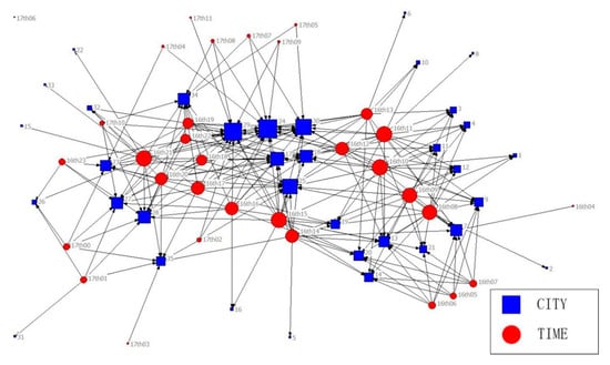 To build and visualize the bipartite network in this research, researchers developed a useful software focused on social network analysis called “The University of California at Irvine NETwork” (UCINET) []. The input information of UCINET could be saved as a matrix format and invoked by different evaluating modules, such as multidimensional scaling, correspondence analysis, factor analysis, and multiple regression. Another useful module in UCINET is NetDrew, which can visualize the nodes and edges of the network from matrix format.