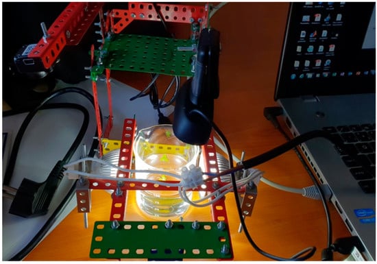 The holders are built using the building kit Merkur (Merkurtoys Ltd., Hradec Králové, Czechia). The lights are cheap LED spot lights (Vakesun Industrial Co., Ltd., Shenzhen, China) with constant luminosity and light diffusors made of paper. The camera used in the experiment is Logitech HD Webcam C270 (Logitech Inc., California, CA, USA), with its own image acquisition software Logitech Webcam Software (Logitech Inc., California, CA, USA). The sensing parameters of the camera were set manually to receive focused and well-exposed images (neither under- nor over-exposed), see Figure 2.