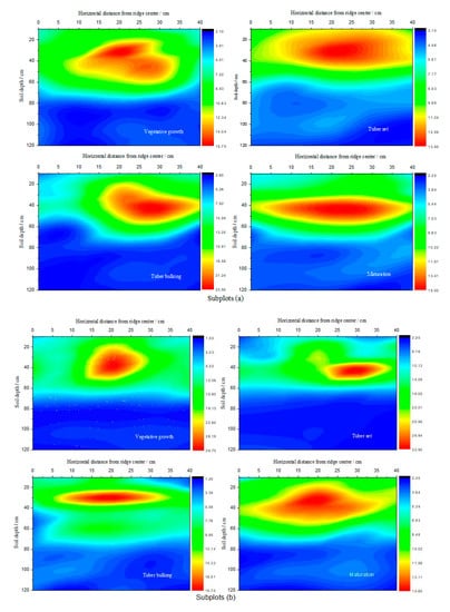 - Sun, Z.Q.; Kang, Y.H.; Liu, H.J. Soil water distribution characteristics and water balance in winter wheat field under sprinkler irrigation. Agric. Res. Arid Area 2006, 24, 100–107. [Google Scholar]