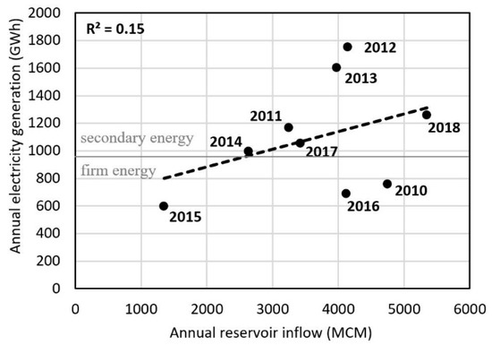 Correlation between annual reservoir inflow and annual energy production.