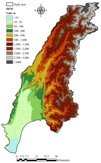 Digital elevation model (DEM) of the Gaoping River watershed.